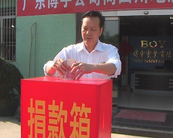 5.12四川汶川大地震牽動著全國13億人民的心!災害至今已造成數萬人罹難,數十萬人流離失所,把無數陽光下鮮活的生命永遠地帶入黑暗世界,造成巨大的人員傷亡和財產損失。一方有難,八方支援!在無法抗拒的大自然災害面前,只有愛才是人類永恒的力量,只有愛才是人類共同抗擊自然災難的偉大力量!博宇公司董事長余炳炎、總經理余建勤帶頭率領并倡議全體員工向災區人民及時伸出援助之手。